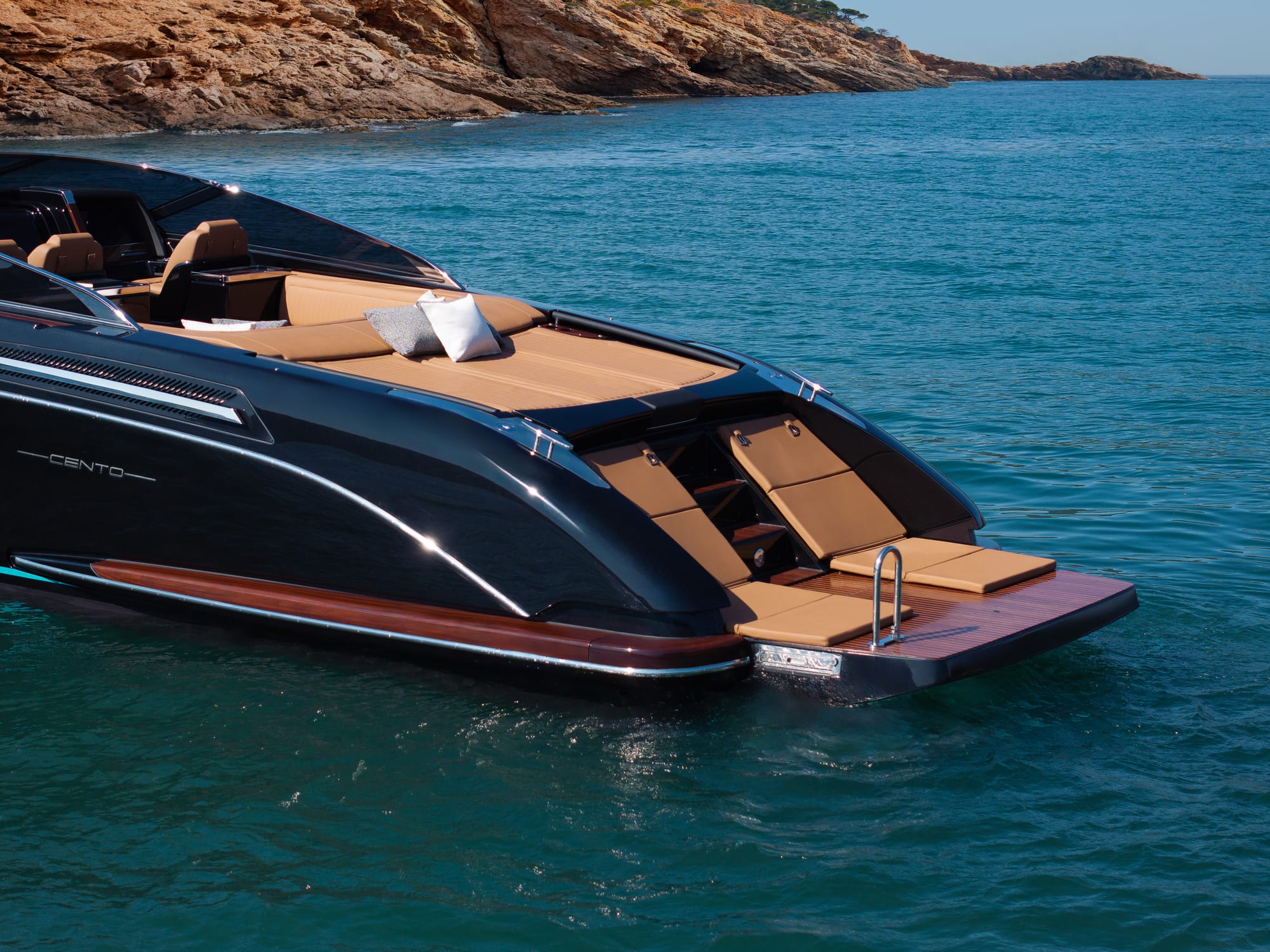 El Cento es una edición limitada a doce unidades, un open de 11,88 metros que no busca reproducir el pasado, sino reinterpretarlo. El diseño, firmado por Officina Italiana Design, mantiene las proporciones y la fluidez de las líneas que han definido a Riva durante décadas, pero introduce una lectura más actual en materiales, acabados y uso del espacio.