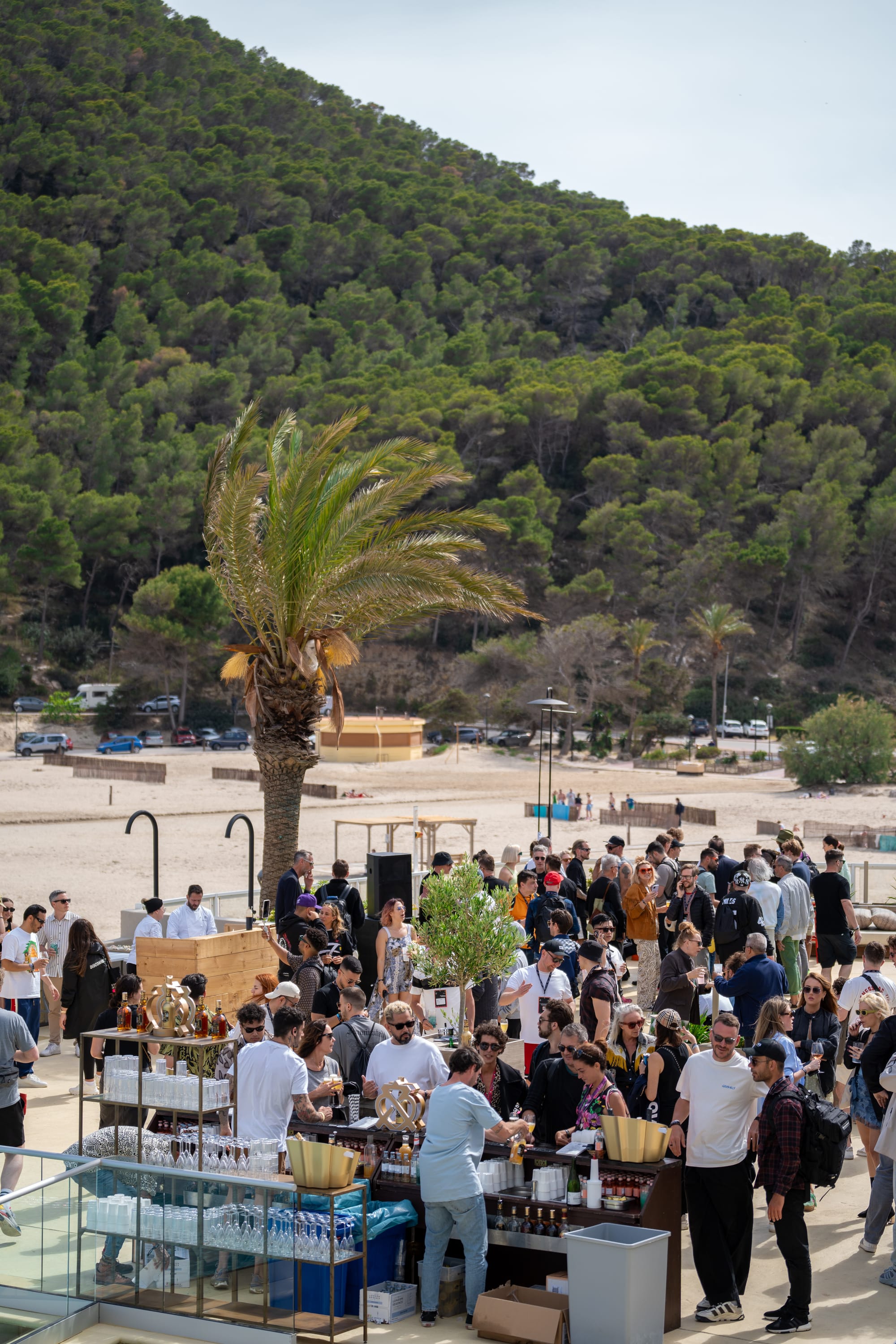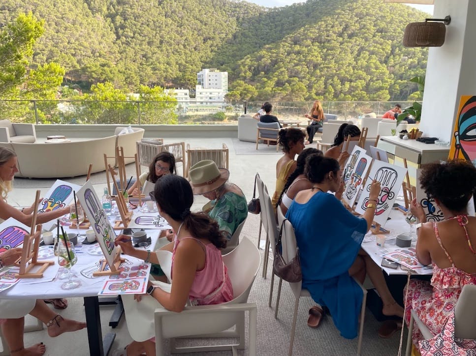 La programación de wellness ocupa un lugar central y no decorativo. Cada mañana comienza con Tai Chi al amanecer, y a lo largo del día se suceden talleres de Medicina Tradicional China, sesiones de breathwork, clases de yoga y caminatas guiadas por los senderos de Cala Llonga. La intención declarada es conectar a los asistentes con el ritmo natural de la isla antes de que arranque la actividad musical y social del resto del día.
