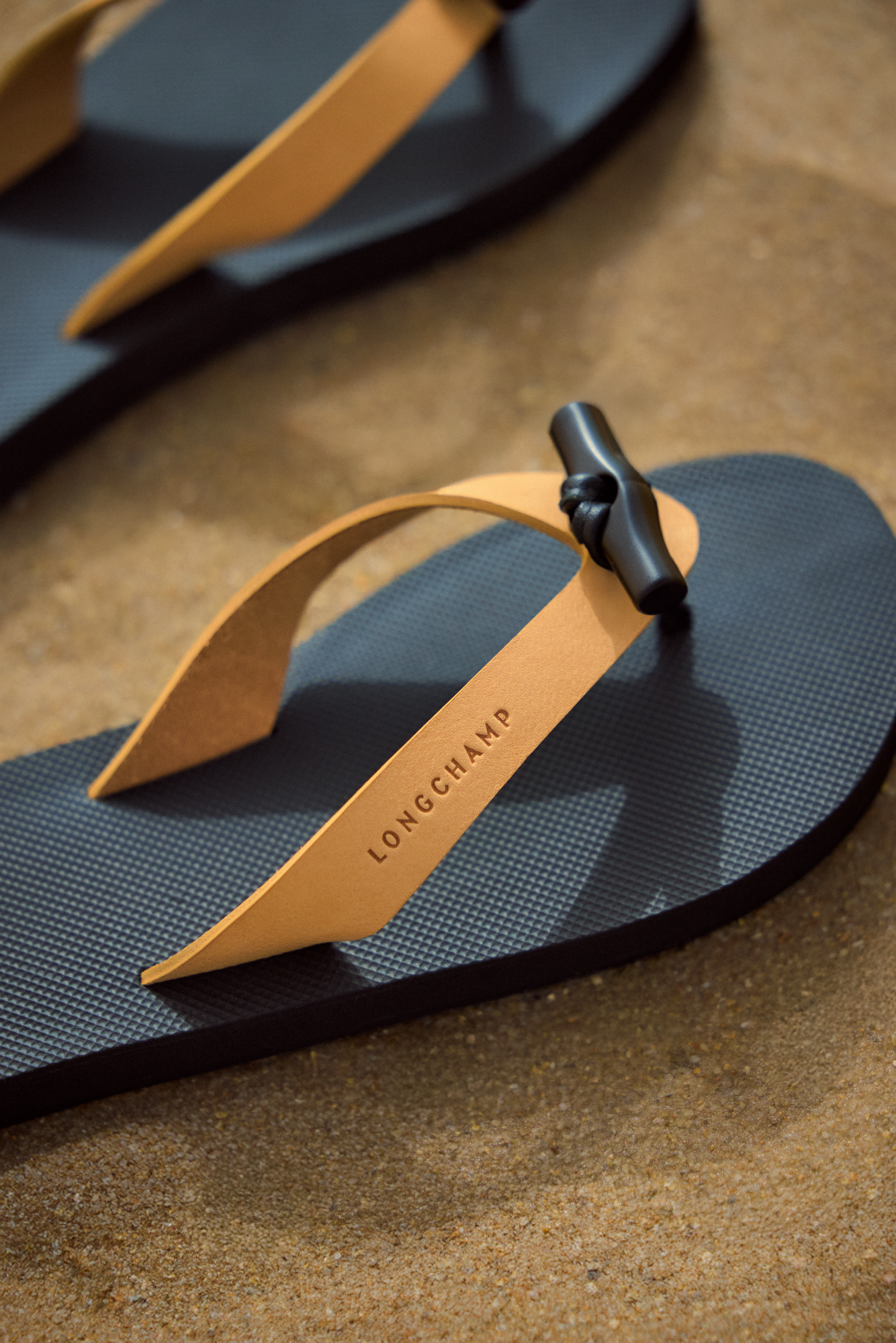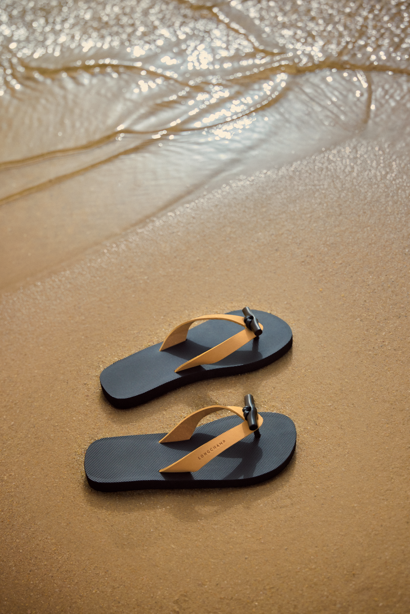 La otra incorporación al capítulo de calzado son unas sandalias tipo flip-flop rediseñadas en clave contemporánea. La versión 2026 apuesta por una construcción ultraligera con suelas ligeramente elevadas y finas tiras de piel curtida vegetalmente, lo que les otorga un acabado que la marca describe como "chic natural". El botón de bambú reaparece aquí como accesorio decorativo, funcionando casi como una joya para el pie.