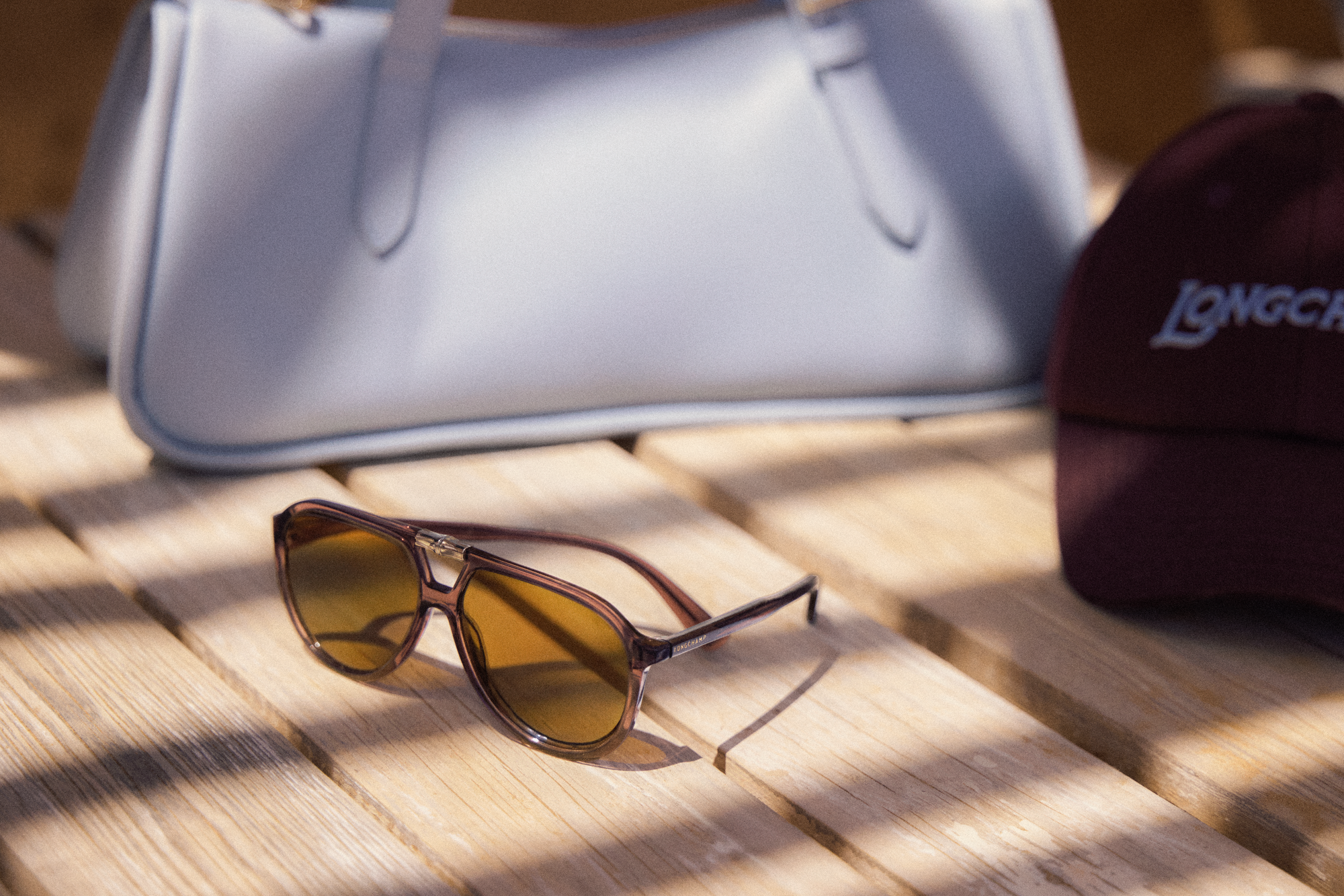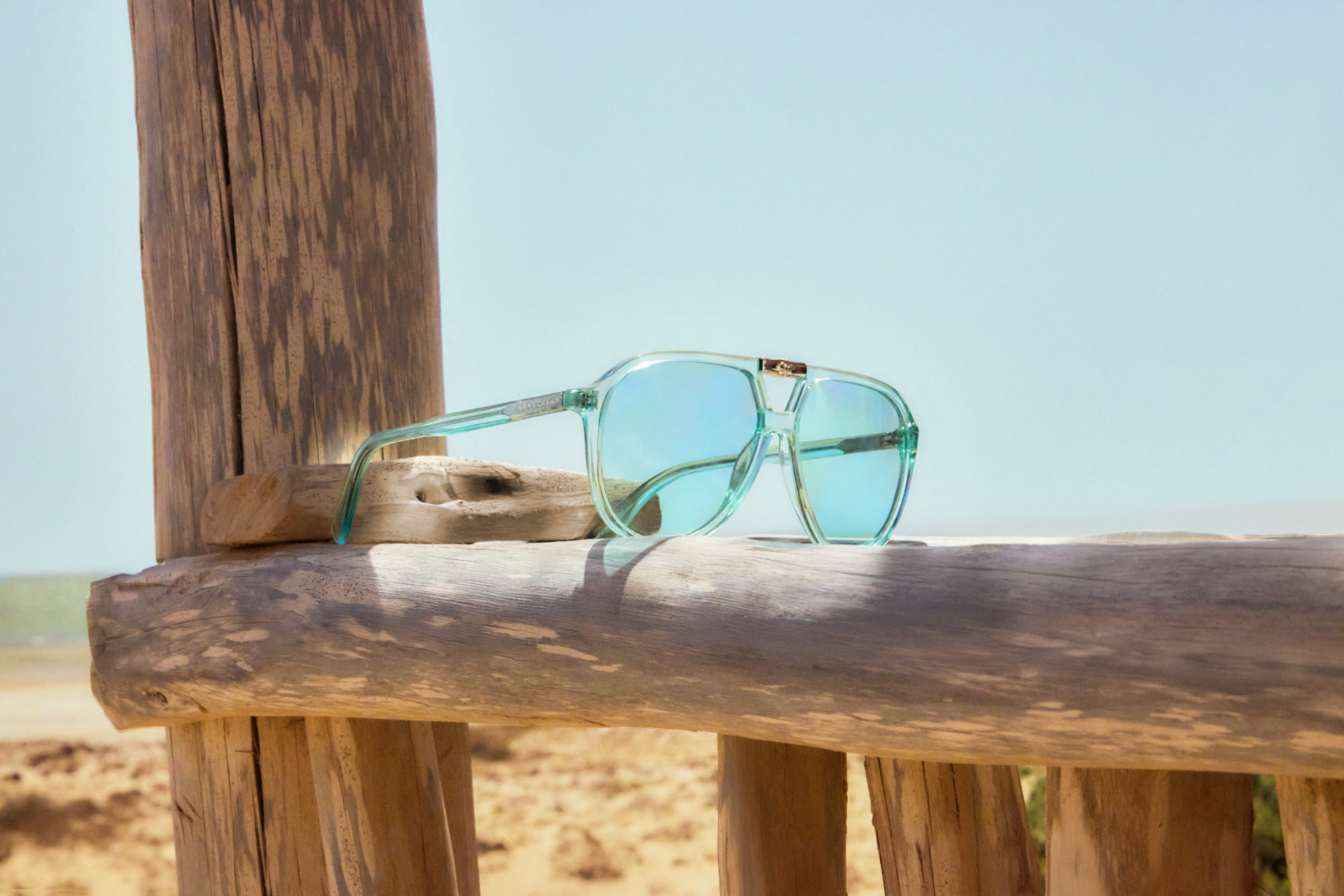 La montura mantiene la proporción generosa del aviador original, un modelo que lleva décadas reapareciendo en las colecciones de moda porque combina con facilidad con distintos tipos de rostro y genera una silueta reconocible. La adaptación de Longchamp le añade la tensión visual del detalle Roseau y la saturación cromática propia de la temporada.