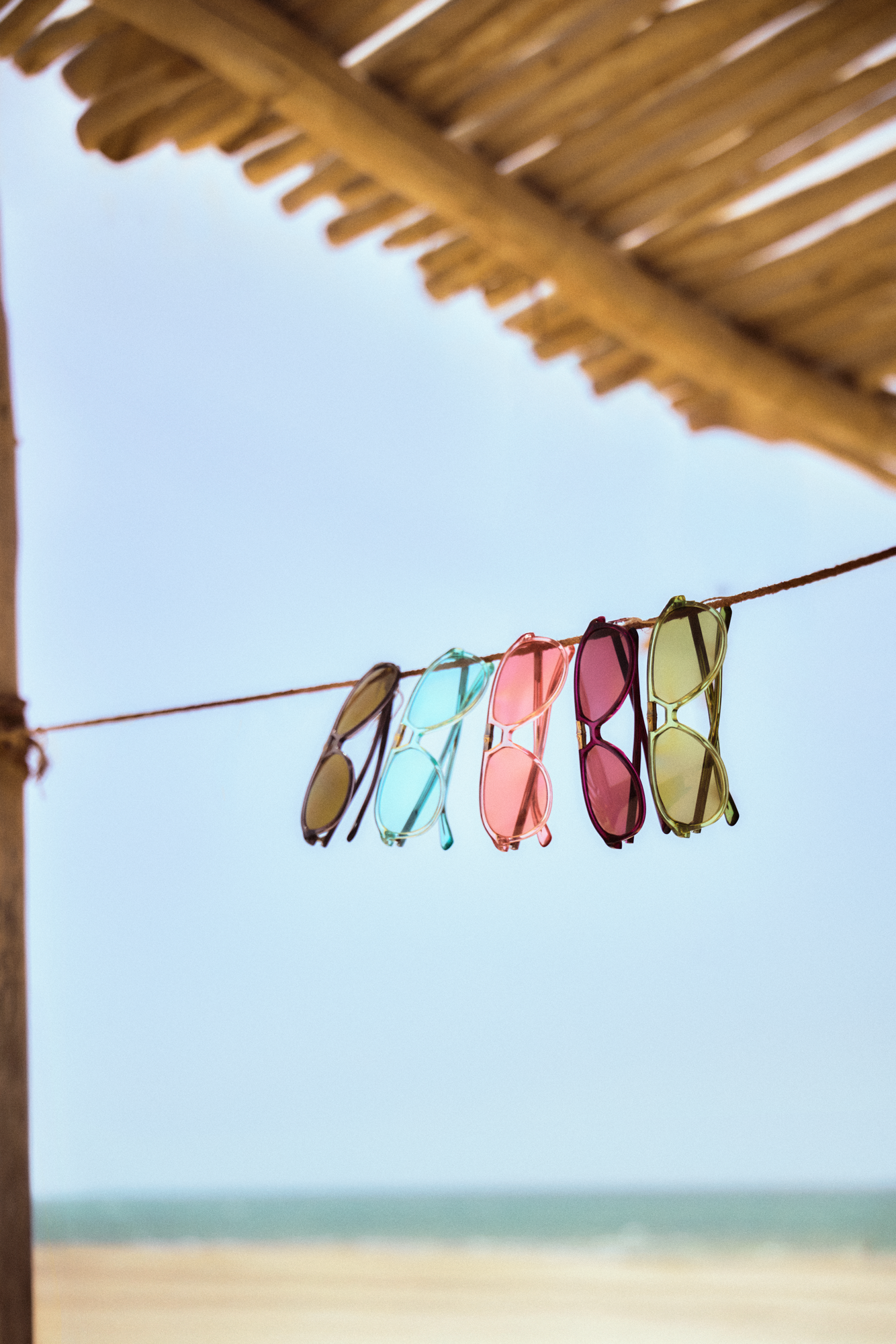 Los cuatro colores disponibles, rojo cereza, verde oliva, verde menta y rosa camarón, convierten las gafas en la pieza más declaradamente statement de toda la selección. Mientras el bañador y el calzado juegan con la versatilidad entre día y noche, las gafas apuestan sin ambigüedad por la visibilidad y el color como forma de expresión veraniega.
