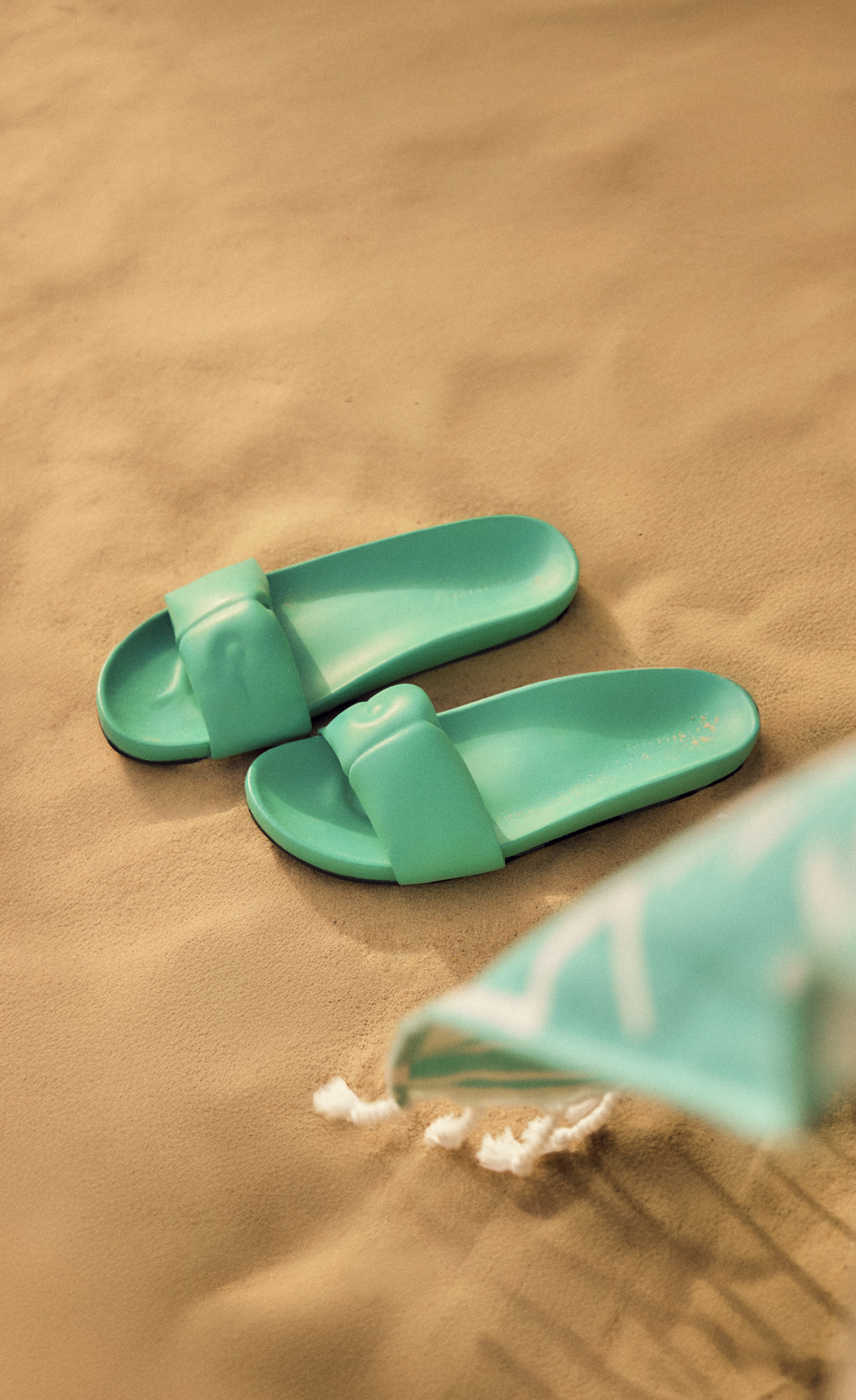 El calzado de la colección pivota sobre dos modelos que comparten el mismo espíritu, la facilidad de uso y la atención al detalle. Las mules Le Roseau, confeccionadas en piel esculpida, retoman el motivo de bambú como elemento gráfico y se presentan en una gama que va del menta y el coral para los paseos costeros al ébano y el negro para las salidas nocturnas. Un solo modelo capaz de adaptarse al ritmo del día.
