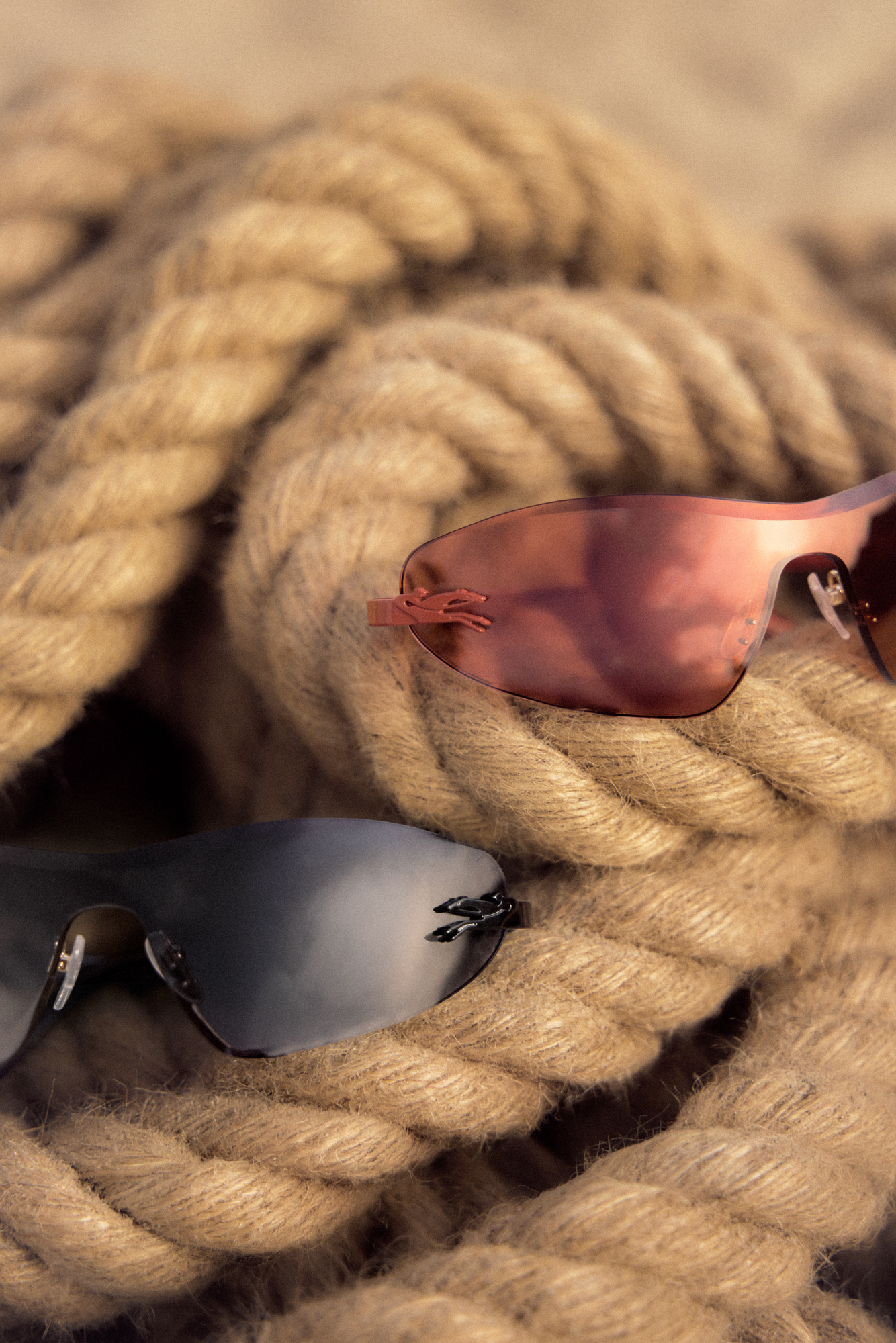 El tercer vértice de la propuesta son las gafas de sol de la colección Parisienne, cuya inspiración declarada fue, según la marca, un cóctel de frutas. El resultado es una reinterpretación de la forma aviador clásica con el sello gráfico de Roseau y una paleta que no deja margen a la discreción.
